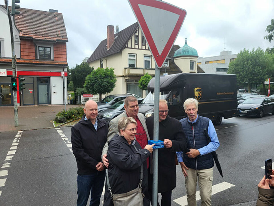 Der Behinderten Beirat der Stadt Reinbek hat nun am 16.09.2025 zusammen mit der Stadt Reinbek, vertreten u.a. von unserem Bürgermeister Herrn Warmer und unserem Verwaltungsdirektor Herrn Dubberke das Projekt vorgestellt, das vor etwa 4 Jahren begann. Dazu wurden die ersten taktilen Schilder an der Ecke Bergstraße / Hamburger Straße und dem Hinweis zum Rathaus montiert. Weitere ca. 150 werden in den nächsten Tagen und Wochen folgen.