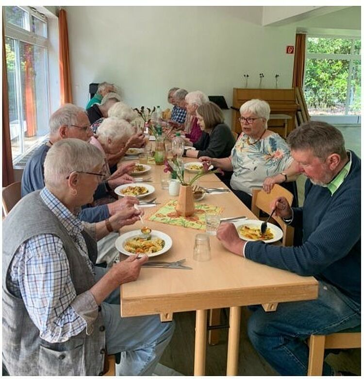 An jedem 3. Dienstag im Monat in der Zeit ab 12.30 - ca. 13.30 Uhr bieten wir im Gemeindezentrum Tangstedt, Hauptstr. 92, gegen eine kleine Spende eine warme Mahlzeit an. Der Tisch wird liebevoll gedeckt und mit Blumen geschmückt. Wer mag, darf gerne kommen. Gekocht wird gutbürgerlich und manches Mal wird ein neues Rezept ausprobiert. Dabei wird immer auf gesunde Zutaten geachtet. Nach dem Essen bleibt immer Zeit für einen gemütlichen „Klönschnack". Die Termine werden monatlich im Ortsblatt "Tangstedter Seiten" abgedruckt.